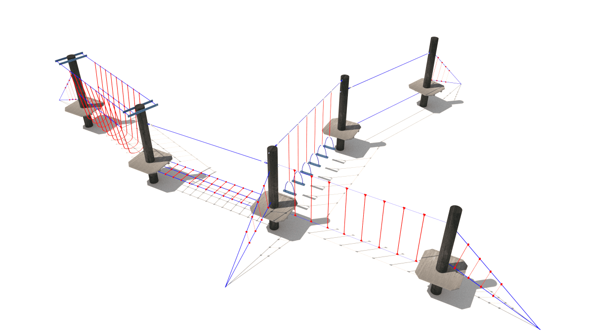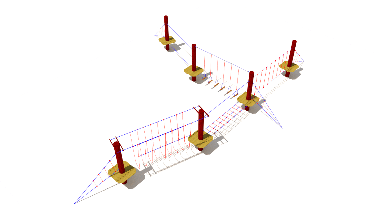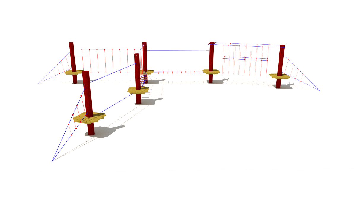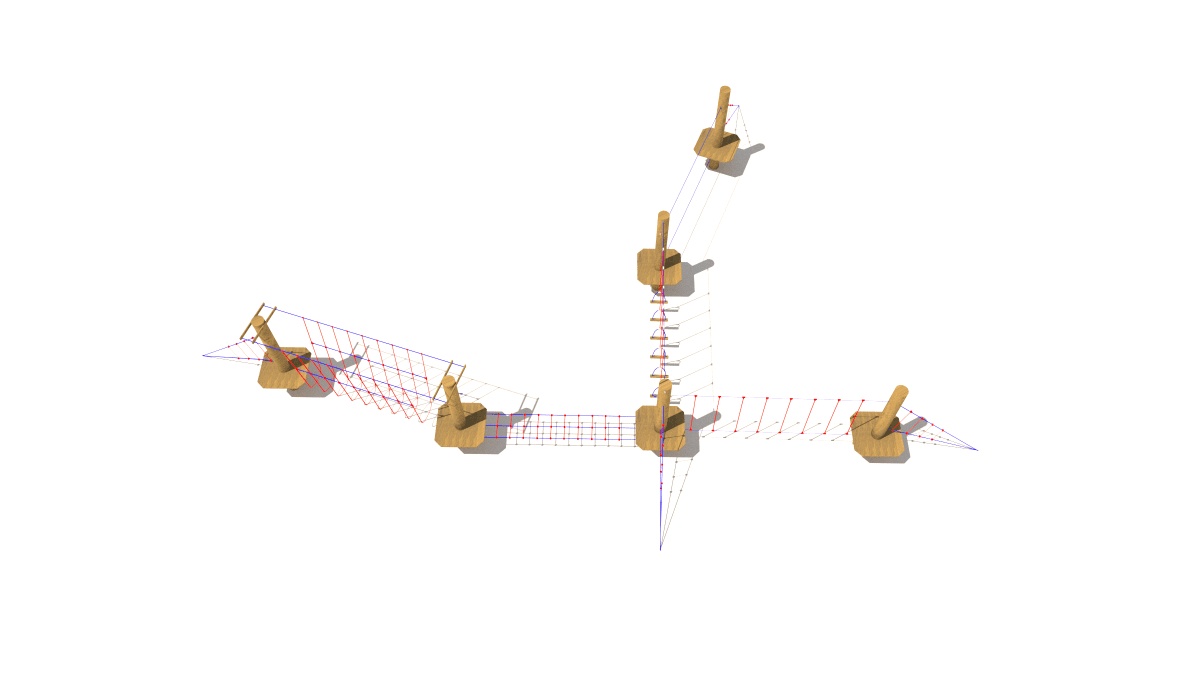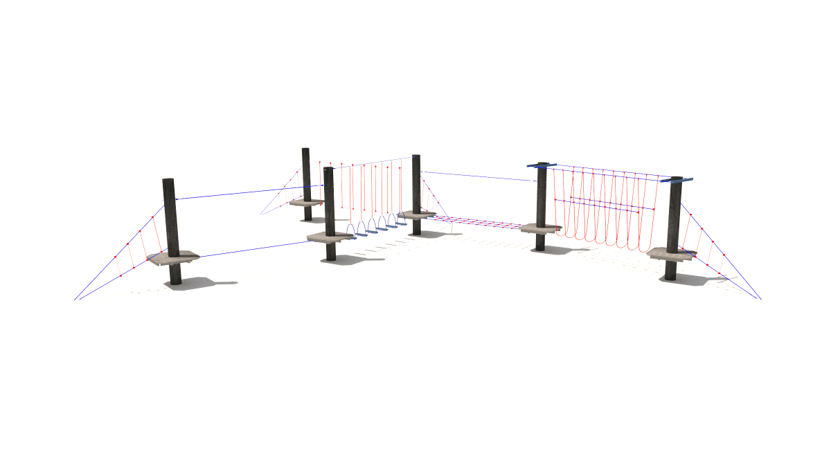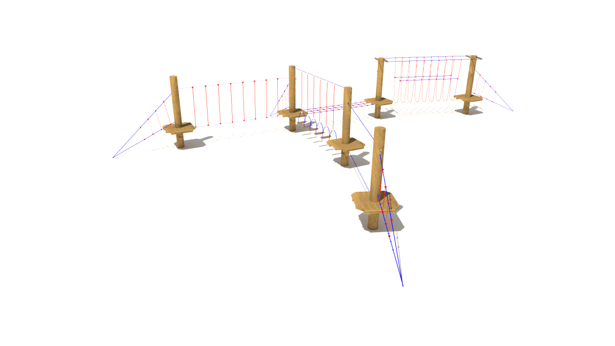 Children’s rope set with balancing elements, made of acacia and oak wood.