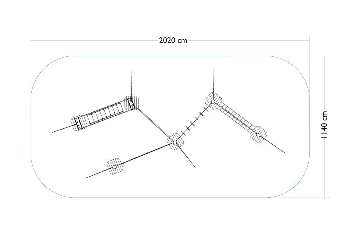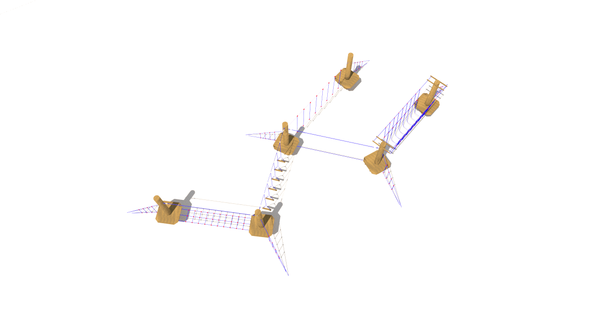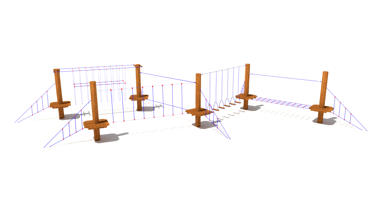 Children’s rope set with balancing elements, made of acacia and oak wood.