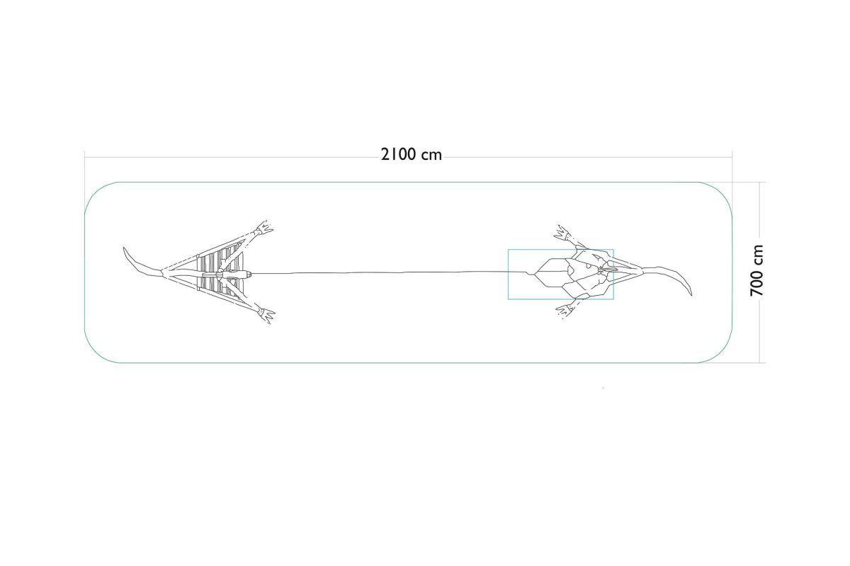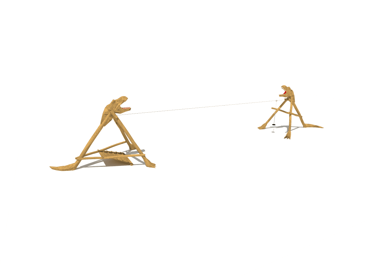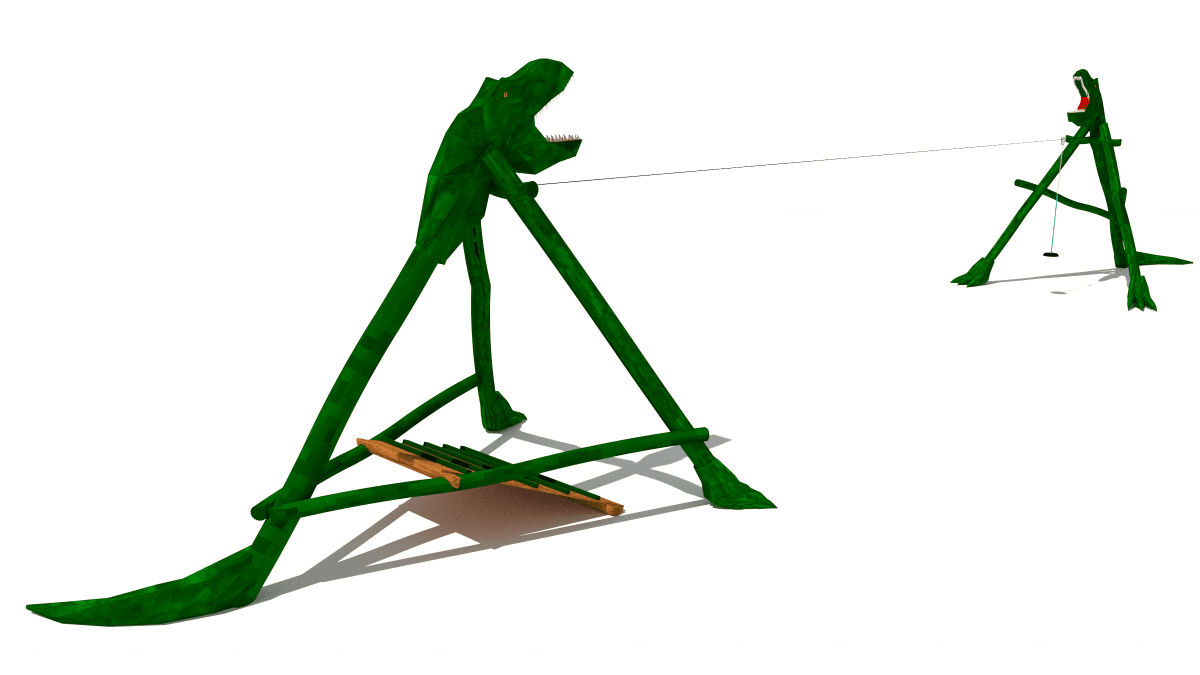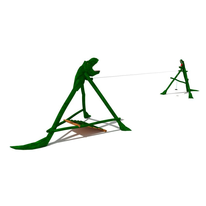 Wooden dinosaur-shaped children’s zipline, made of acacia and oak.