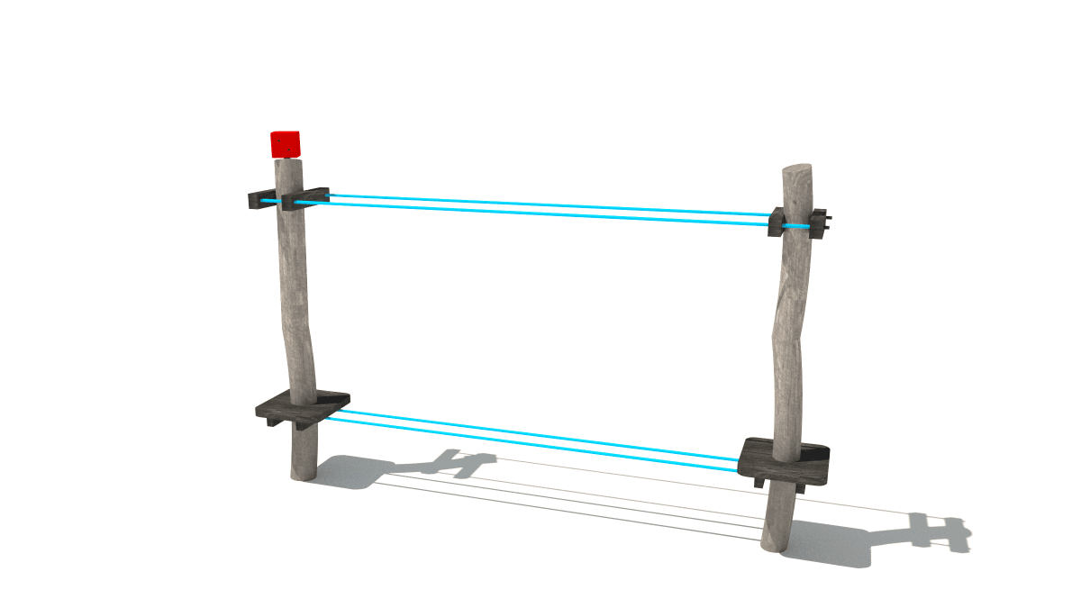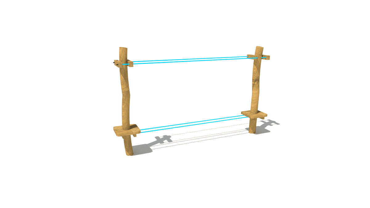 Wooden children’s rope crossing climbing frame, made of acacia and oak.