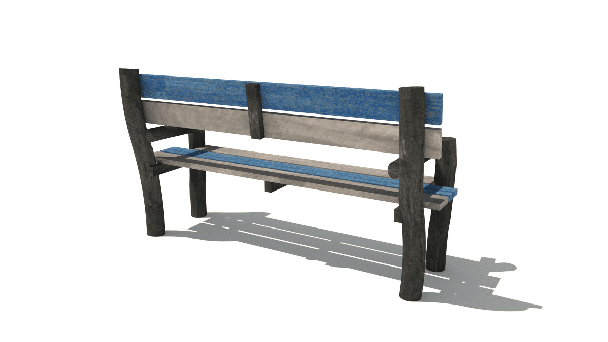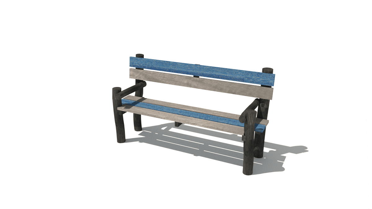 Wooden outdoor bench with armrests, made of acacia and oak wood.