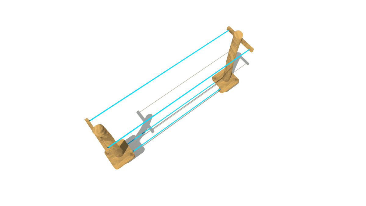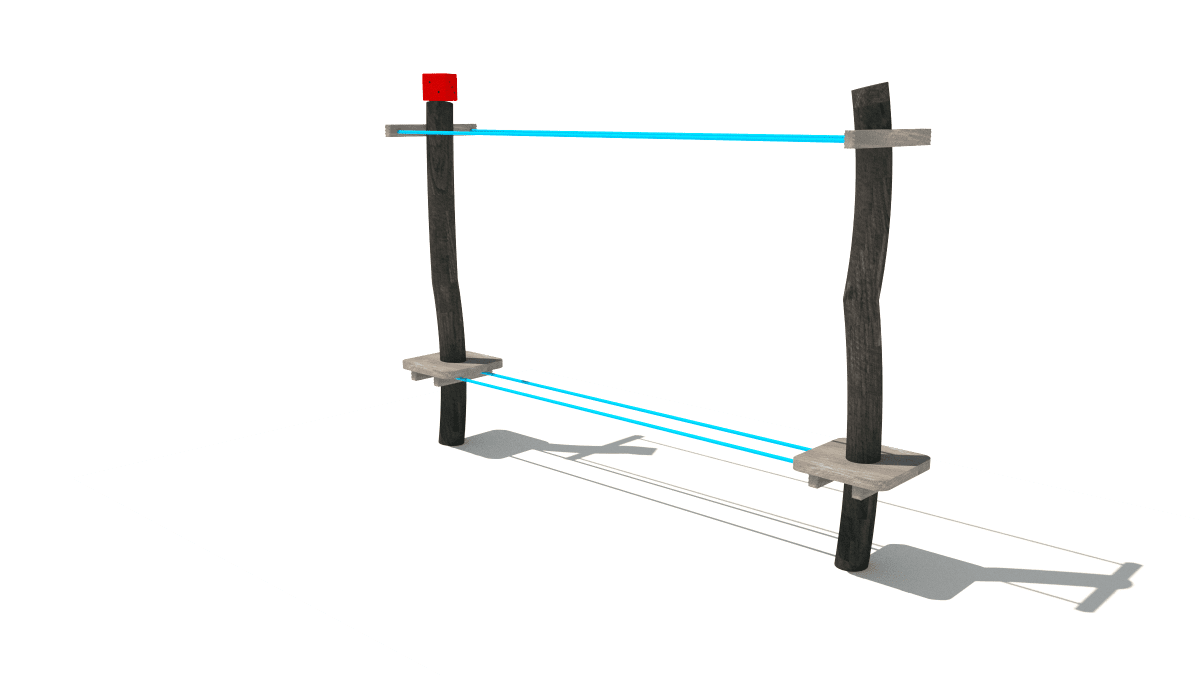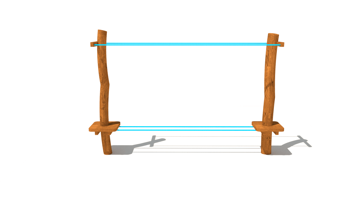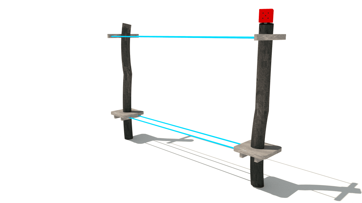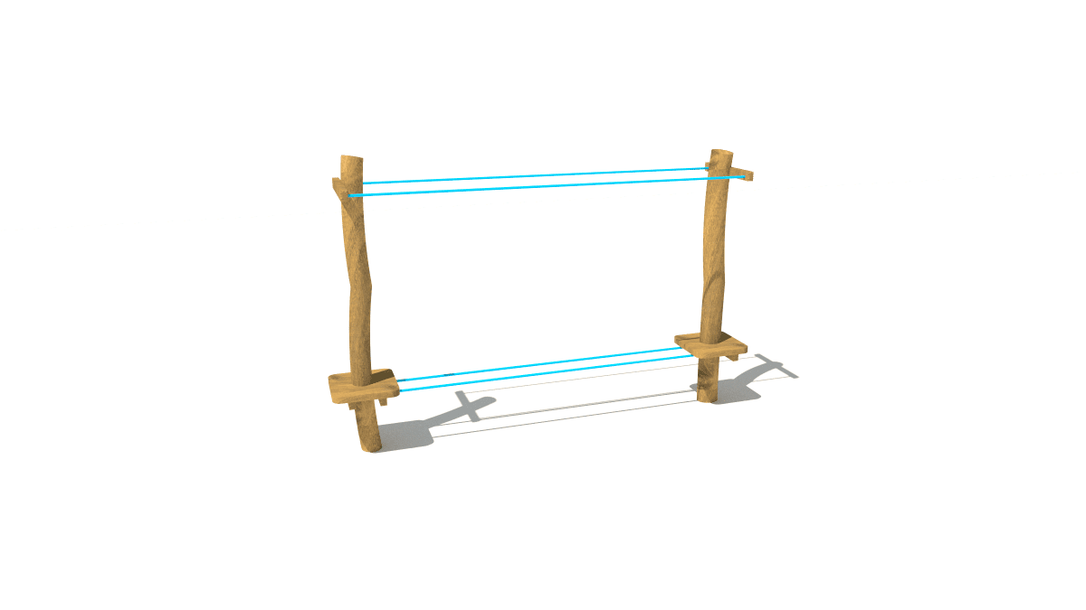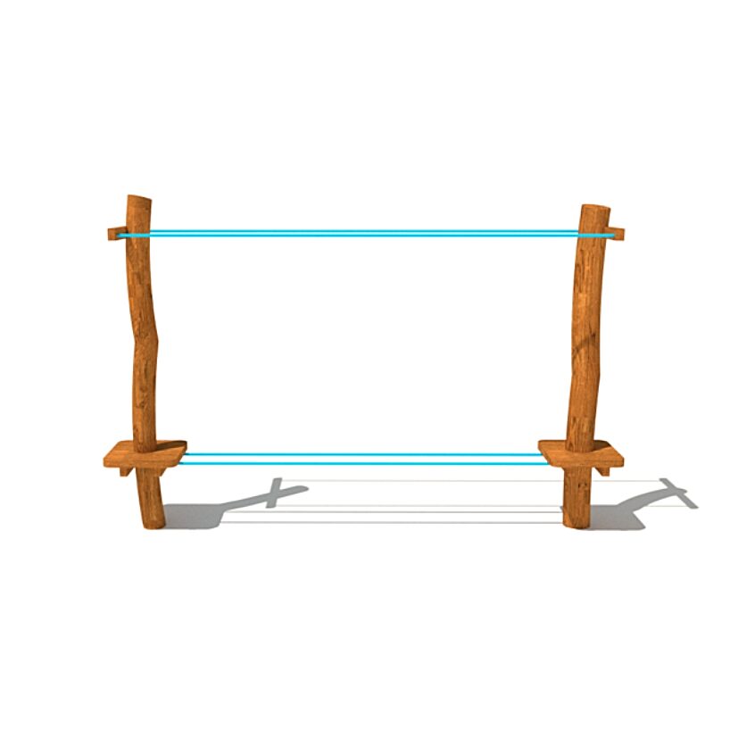 Wooden children’s small balance rope crossing climbing frame, made of acacia and oak wood.