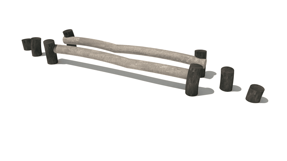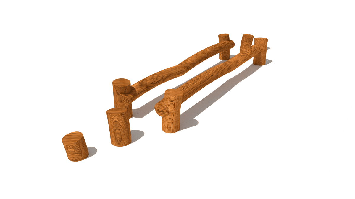 Wooden children’s small balance beam climbing frame, made of acacia and oak wood.
