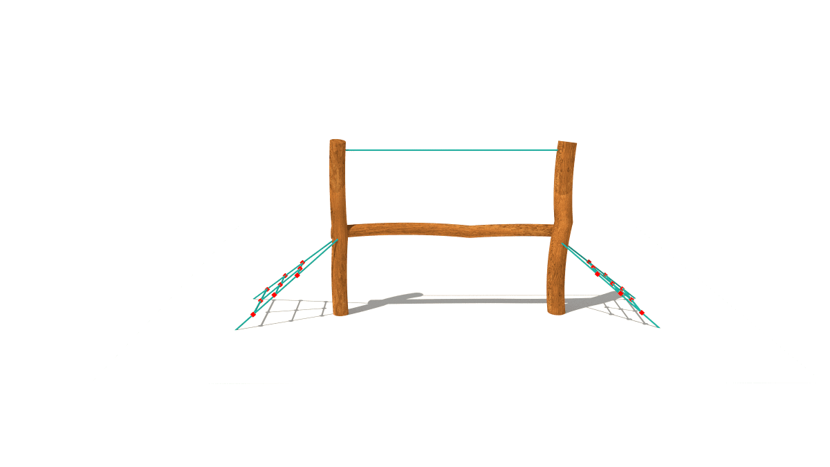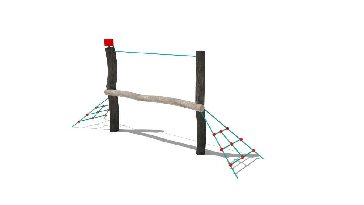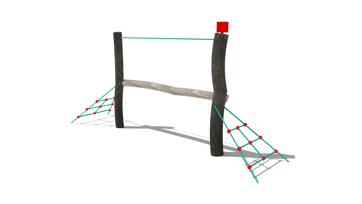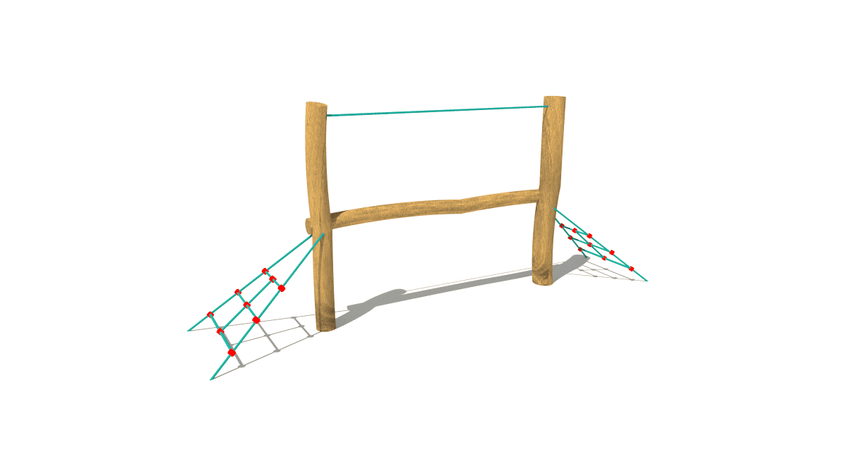Wooden children’s small aerial balance beam climbing frame, made of acacia and oak wood.