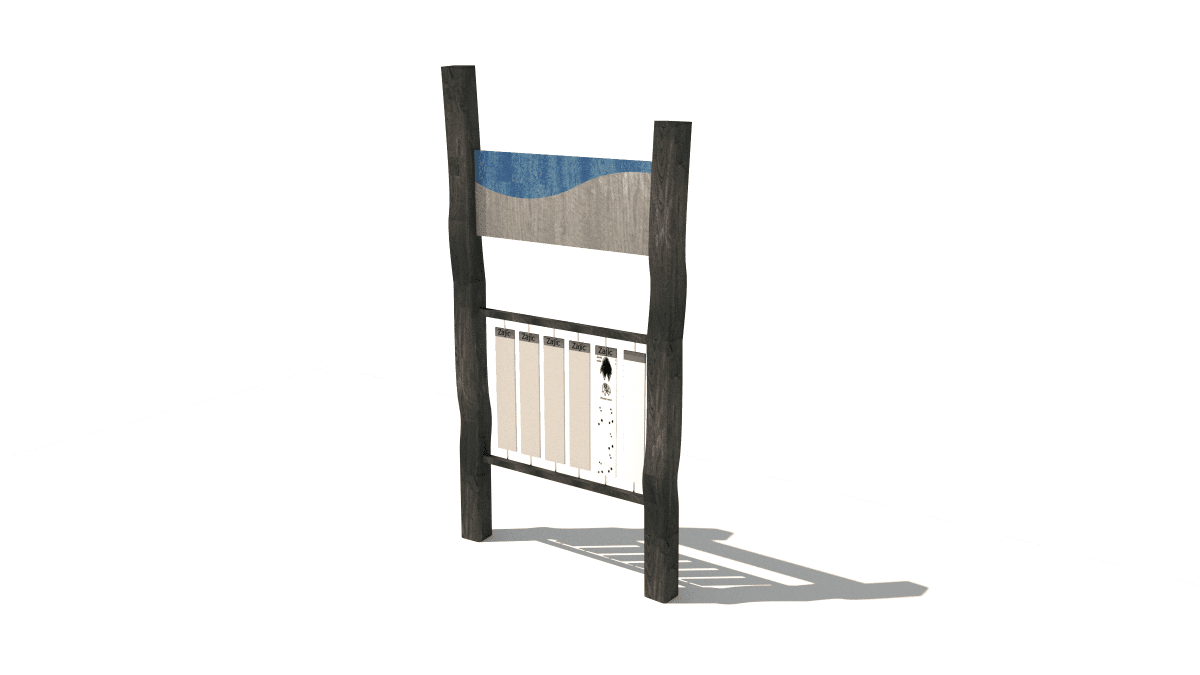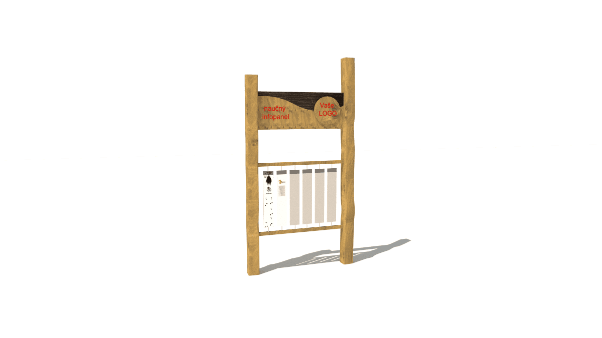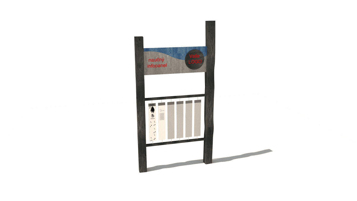 Wooden educational information panel, made of acacia and oak wood.