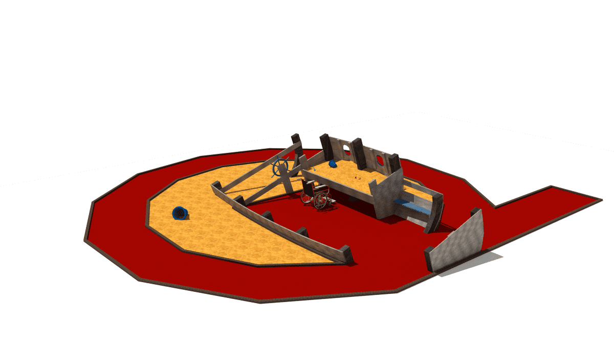 Wooden children’s sandbox accessible for wheelchair users, made of acacia and oak.