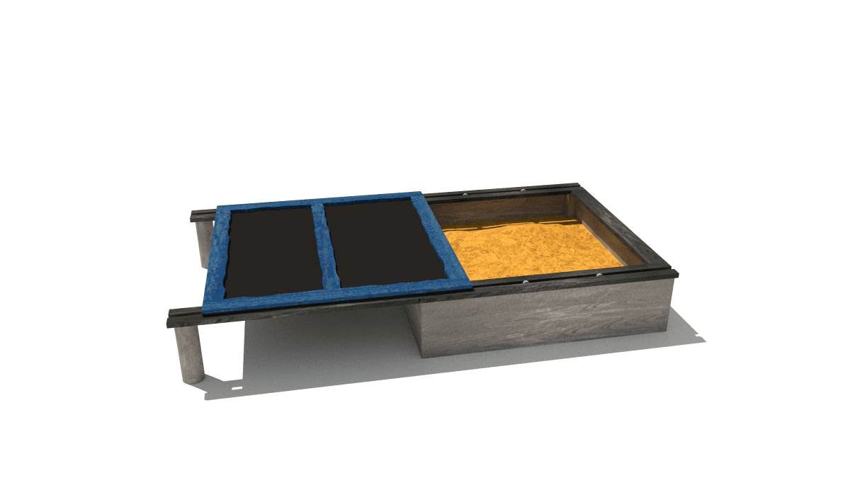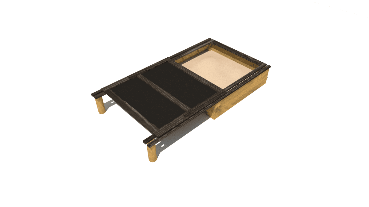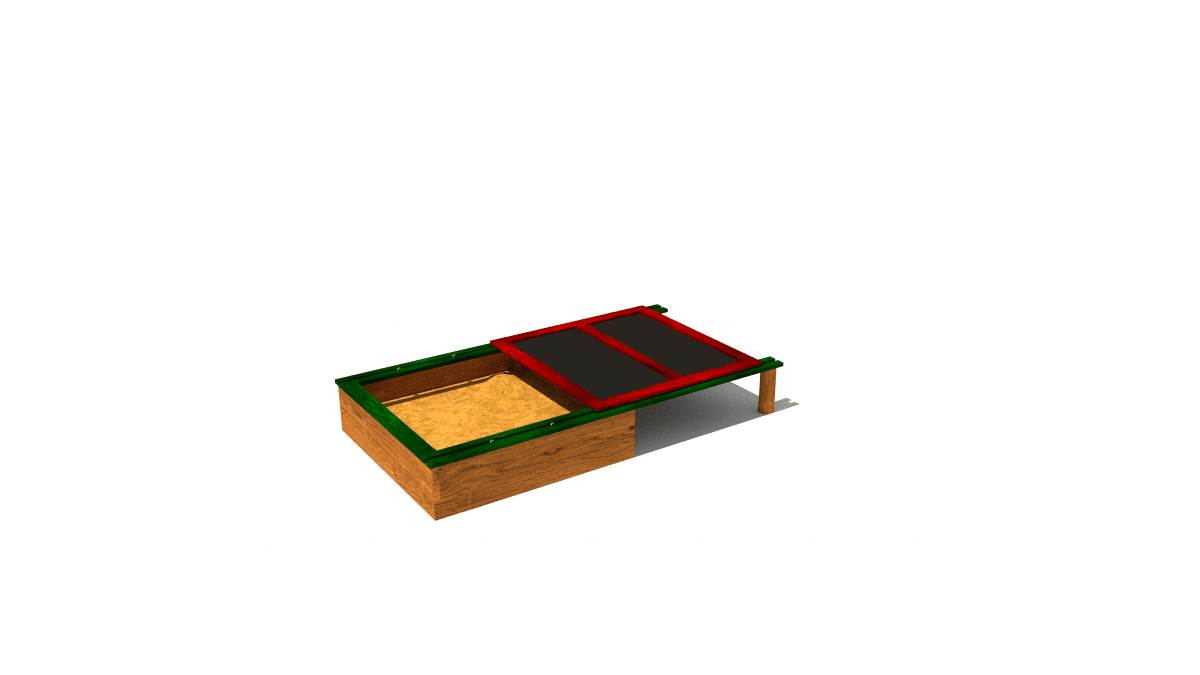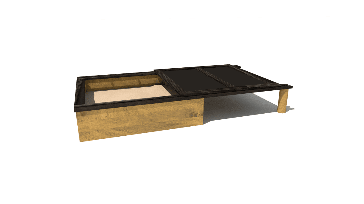 Wooden children’s sandbox with lid, made of acacia and oak.