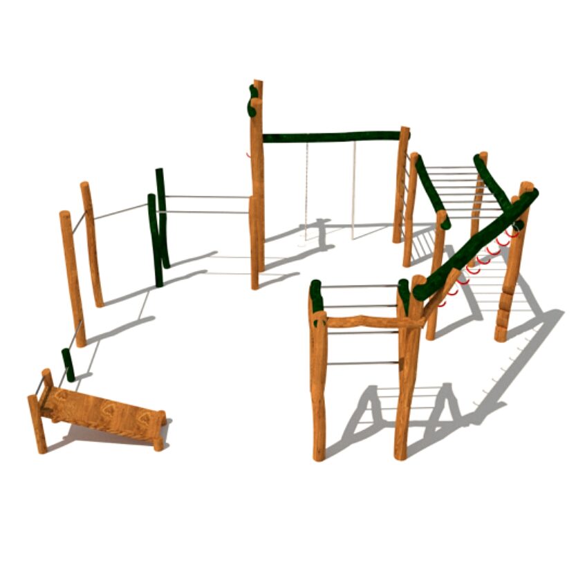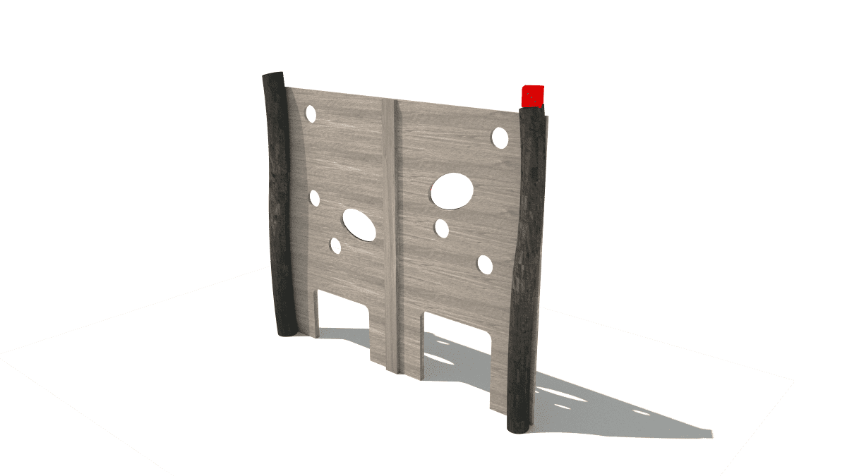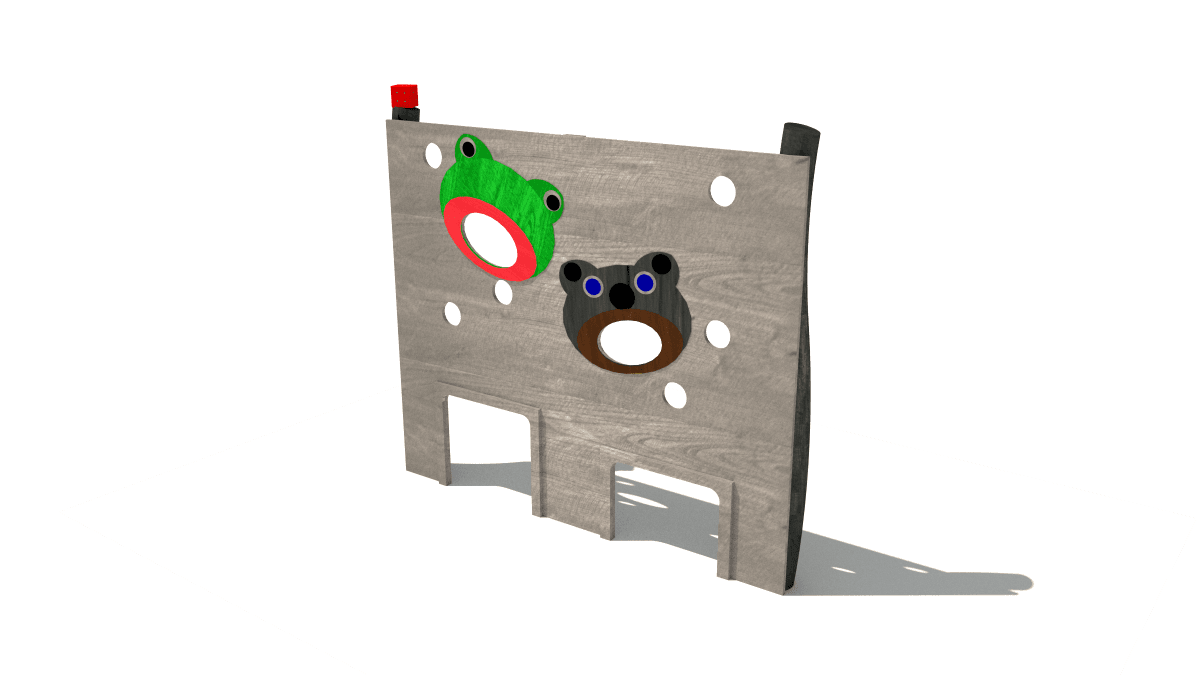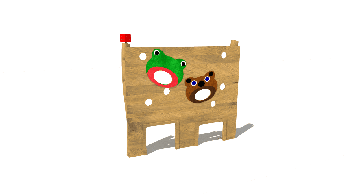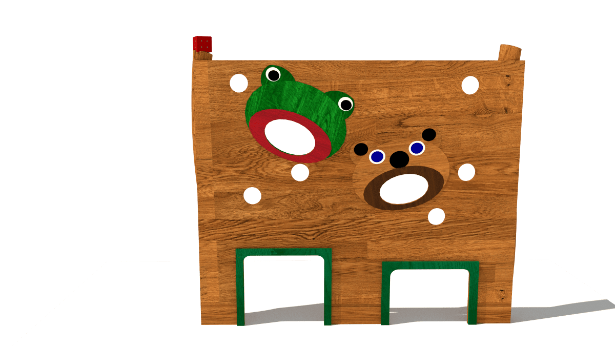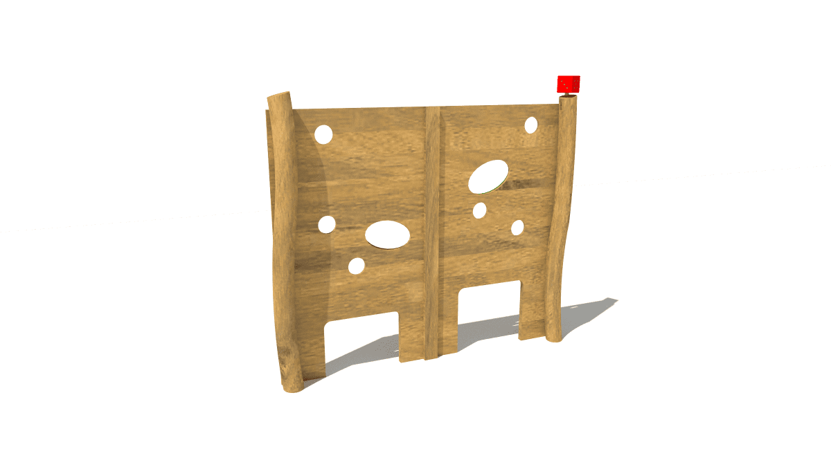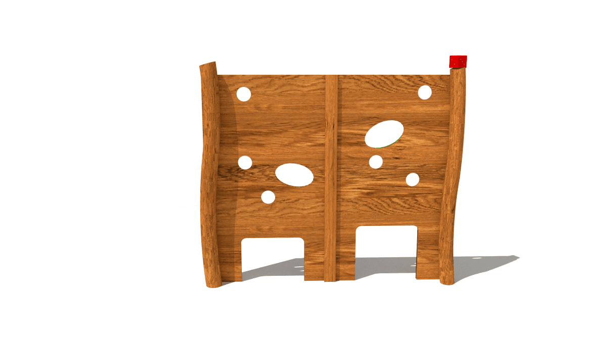 Wooden children’s throwing sports element with multiple holes, made of acacia and oak wood.