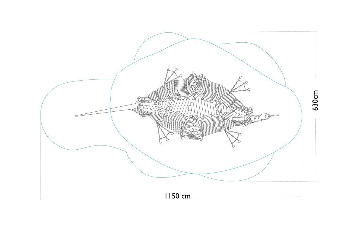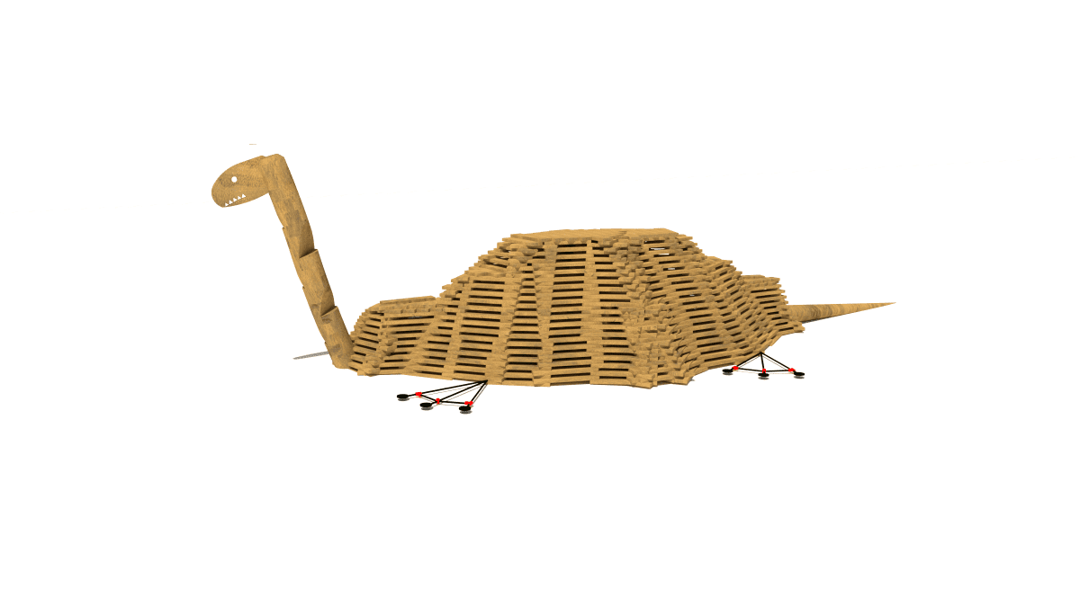Wooden children’s brachiosaurus climbing frame, made of acacia and oak wood.