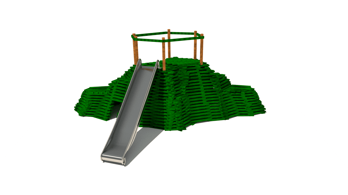 Wooden children’s hill play set with a slide and internal space, made of acacia and oak wood.