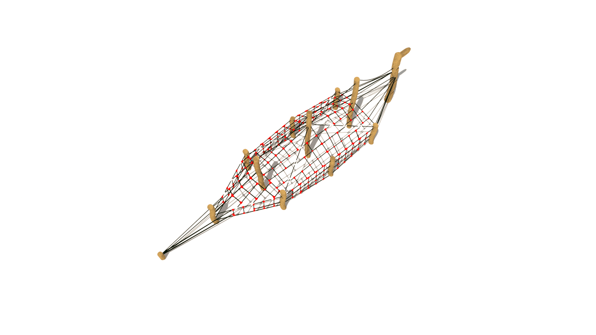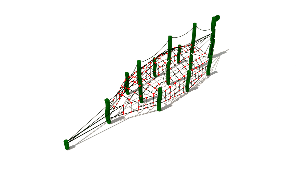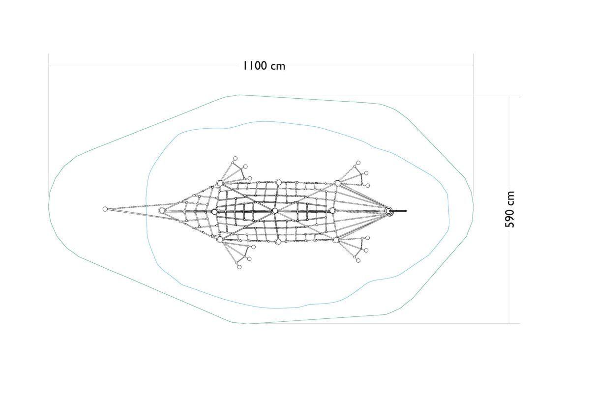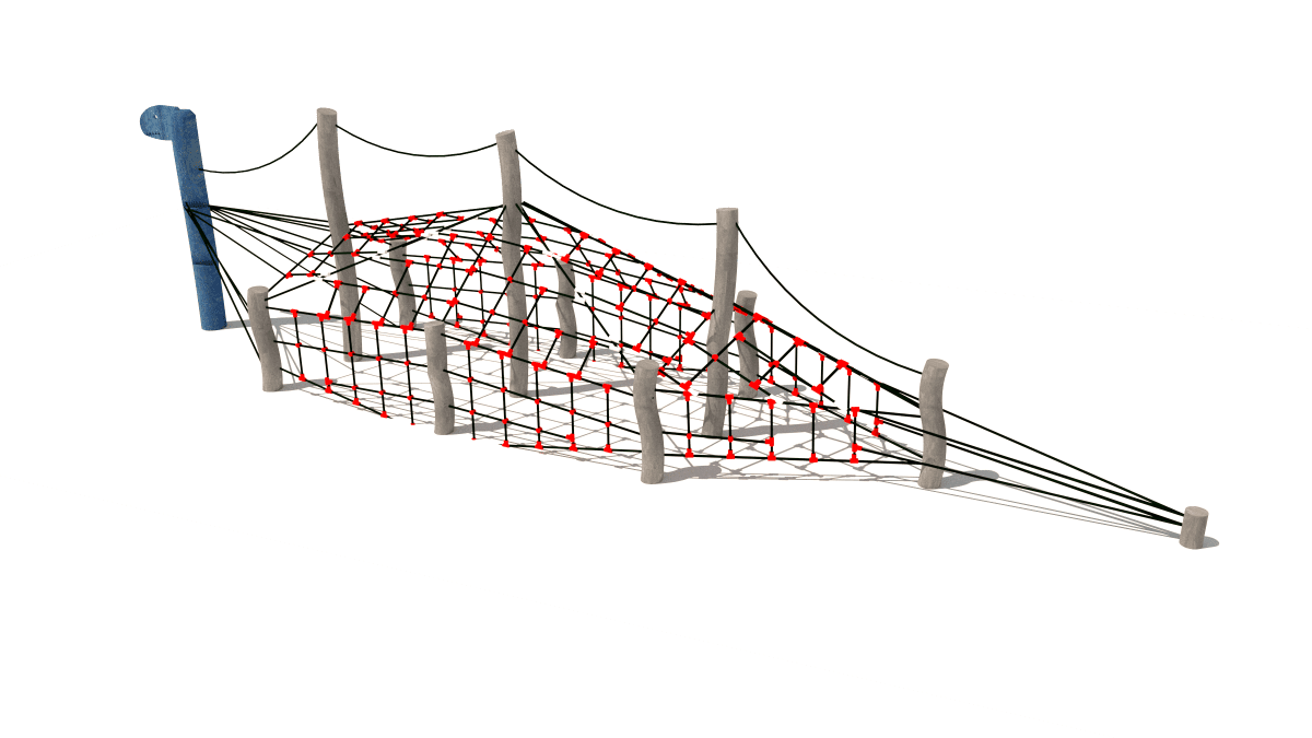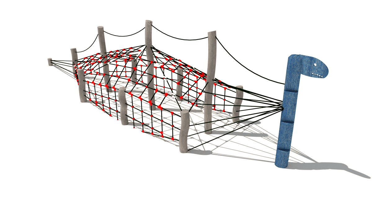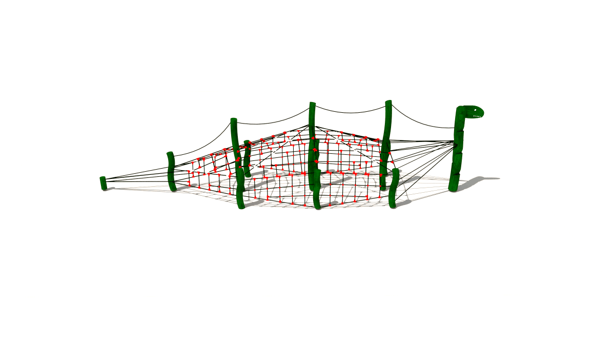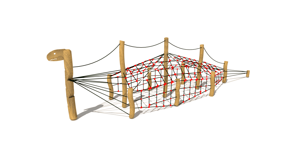 Wooden children’s net climbing frame stegosaurus, made of acacia and oak wood.