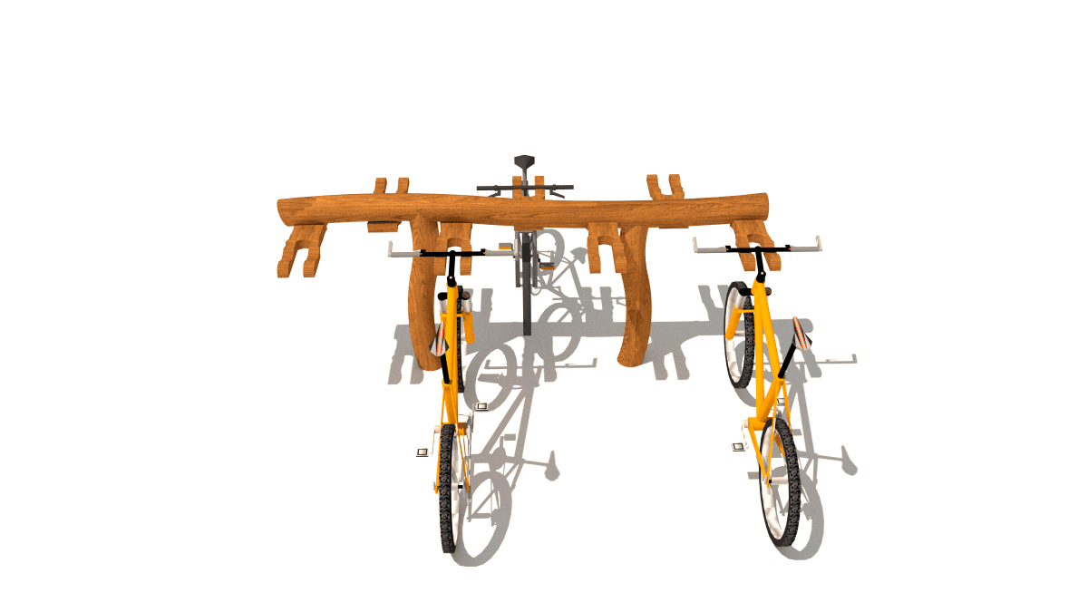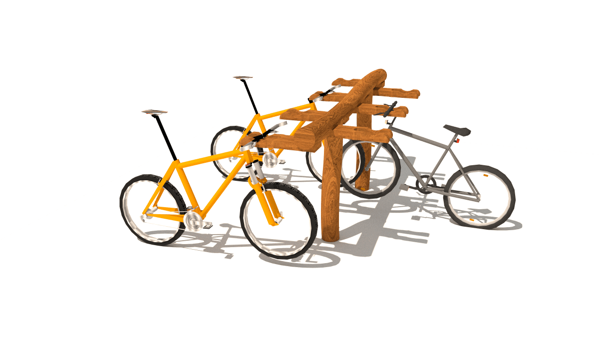 Wooden bike rack, made of acacia and oak wood.
